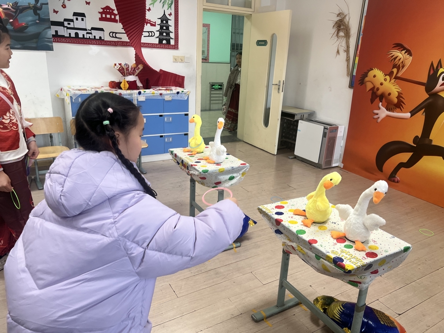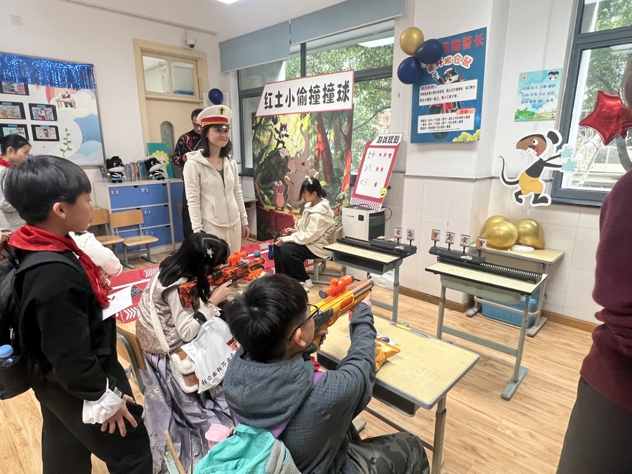 “每个班级的主题都是班主任抽签决定的,43个班级对应43个特色主题,最大限度保证了活动的丰富性和独特性。”学校教工团支部书记袁天生介绍,从场景布置到游戏设计,每个班级的活动方案都由家长与老师共同策划打磨,“昨天大家一直忙到晚上10点才收尾,家长们的参与热情特别高,只为给孩子们呈现一场完美的游园会。”他还提到,每年的活动主题都会轮换,“今年的中国动画主题虽不是首次尝试,但我们加入了不少新元素,比如去年大火的哪吒IP,就很受孩子们欢迎。”