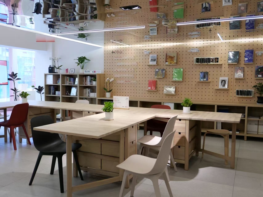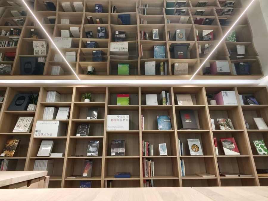 “Doland人文艺术书房”分为多个功能区,虽以书为主具备书籍展示、借阅功能,也有可移动桌椅提供小型讲座、圆桌讨论、工作坊等活动,还有咖吧可供休憩、交流等。这里的书籍颇有特色,除了与视觉文化、当代艺术、社会学、心理学等息息相关,还联动当前展览推出艺术家相关画册、散文集等,成为观展体验的文本注解与延展。此外,还依托馆内重磅项目中国当代艺术年鉴、中国当代影像艺术年鉴等带来相关书籍,为艺术爱好者们提供更多专业视角。